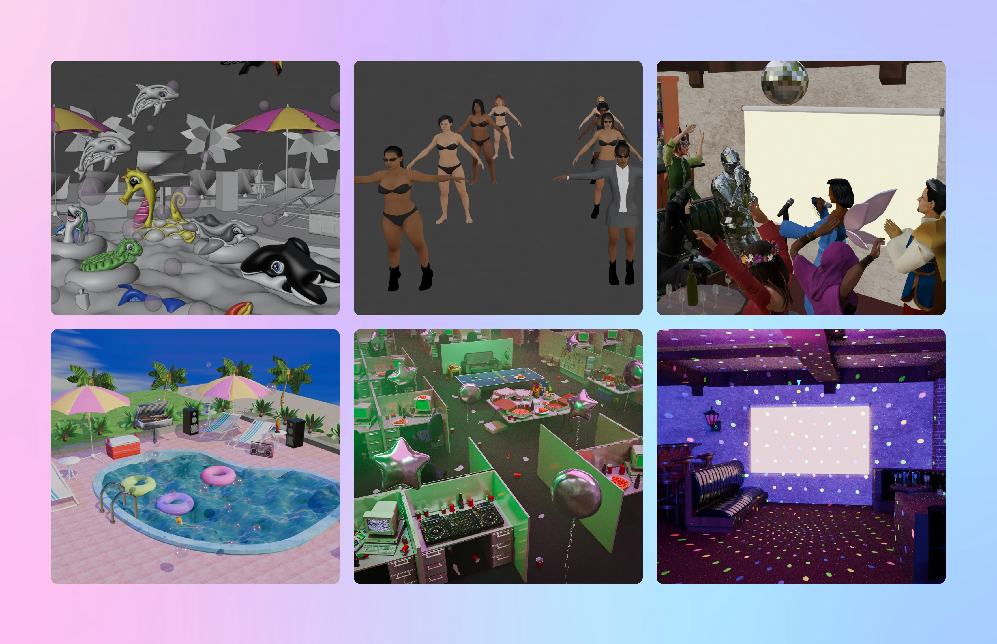 Partiful is a platform for managing invites and updates for parties and events. We designed multiple custom 3d scenes for Partiful to use on their event page templates that live in their app.